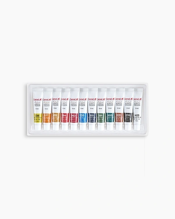 Camel Artist Acrylic Colours Assorted pack of 12 shades in 9 ml