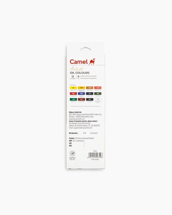 Camel Artist Oil Colours Assorted pack of 12 shades in 9 ml