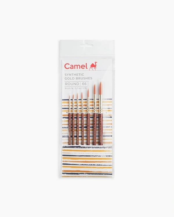 Camel Synthetic Gold Brushes Assorted pack of 7 brushes, Round - Series 66