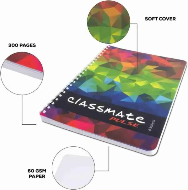 Classmate Pulse Single Line A4 Size 6 Subject Notebook 300 Pages 29.7 cm X 21 cm