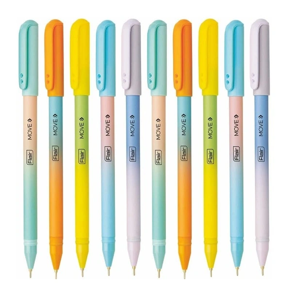 FLAIR Move Fine Tip Ball Pen |Blue Ink, Pack Of 10